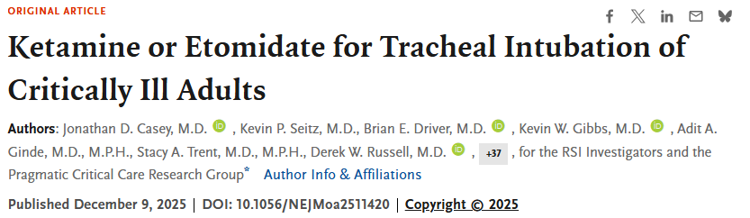 결론은 중환자 성인에서 intubation 시 ketamine 을 사용하는 것이 etomidate 에 비해 28일까지의 병원 내 사망 발생률을 유의하게 낮추지 못하였습니다.