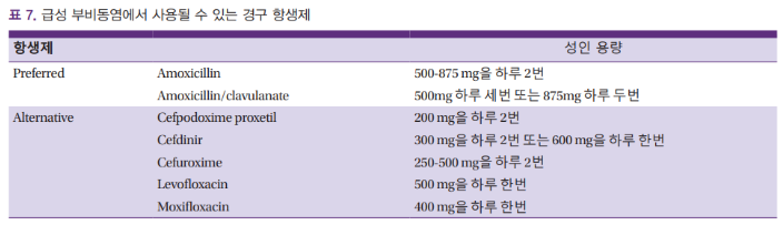 사용하는 항생제의 종류로는 amoxacillin 10일 요법, cefdinir, azithromycin 5일 요법 등을 사용할 수 있습니다.